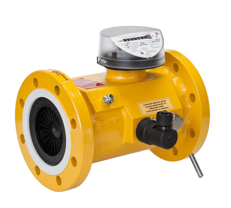 Турбинный счетчик газа TRZ G650/1.6 Ду 150 состоит из корпуса (фланцевое исполнение) и измерительного преобразователя. При воздействии потока газа на турбину, последняя вращается со скоростью, пропорциональной скорости потока (объемному расходу) газа.